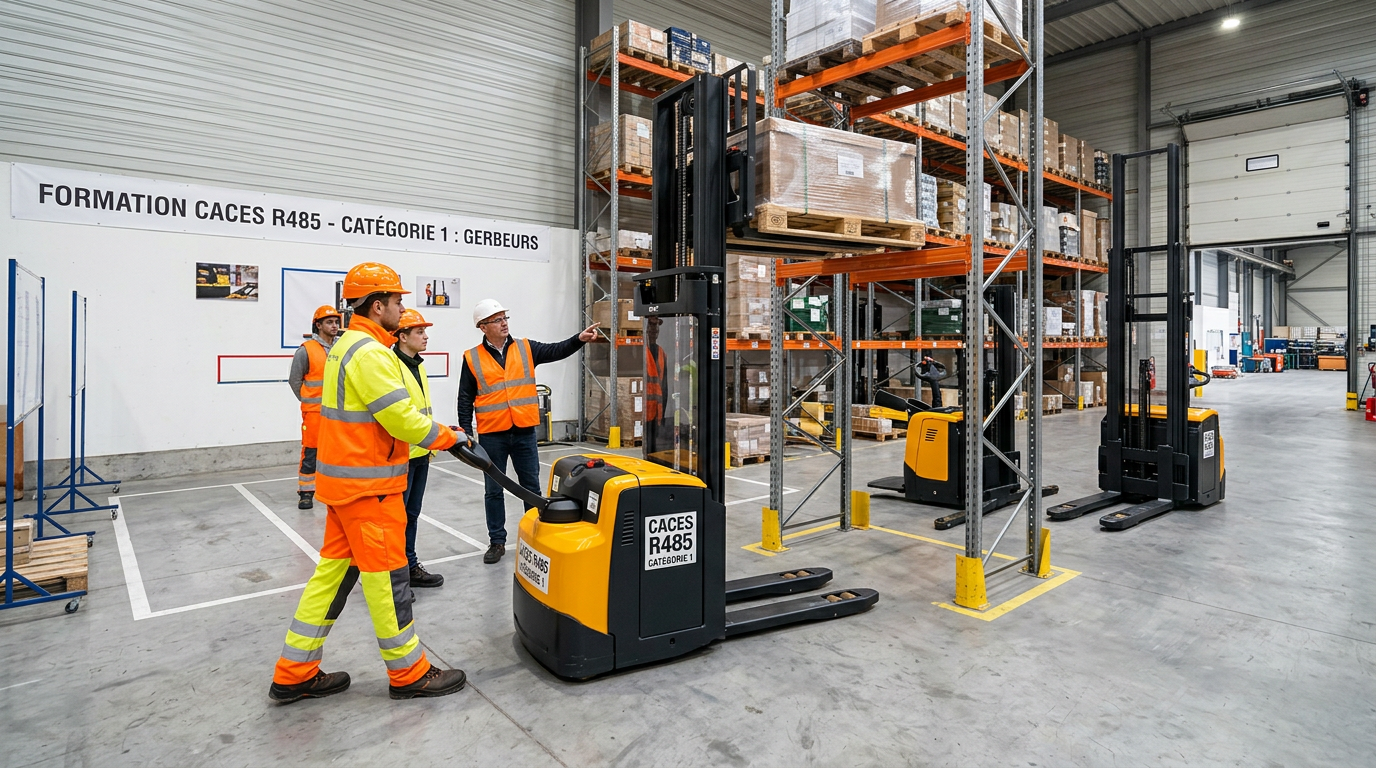 L'intérimaire arrive souvent avec son CACES R485. Cependant, vous avez l'obligation de lui dispenser une formation pratique au poste de travail (accueil sécurité) pour lui montrer les spécificités de votre site et de votre matériel. Notre intervention peut servir à valider formellement cet accueil.