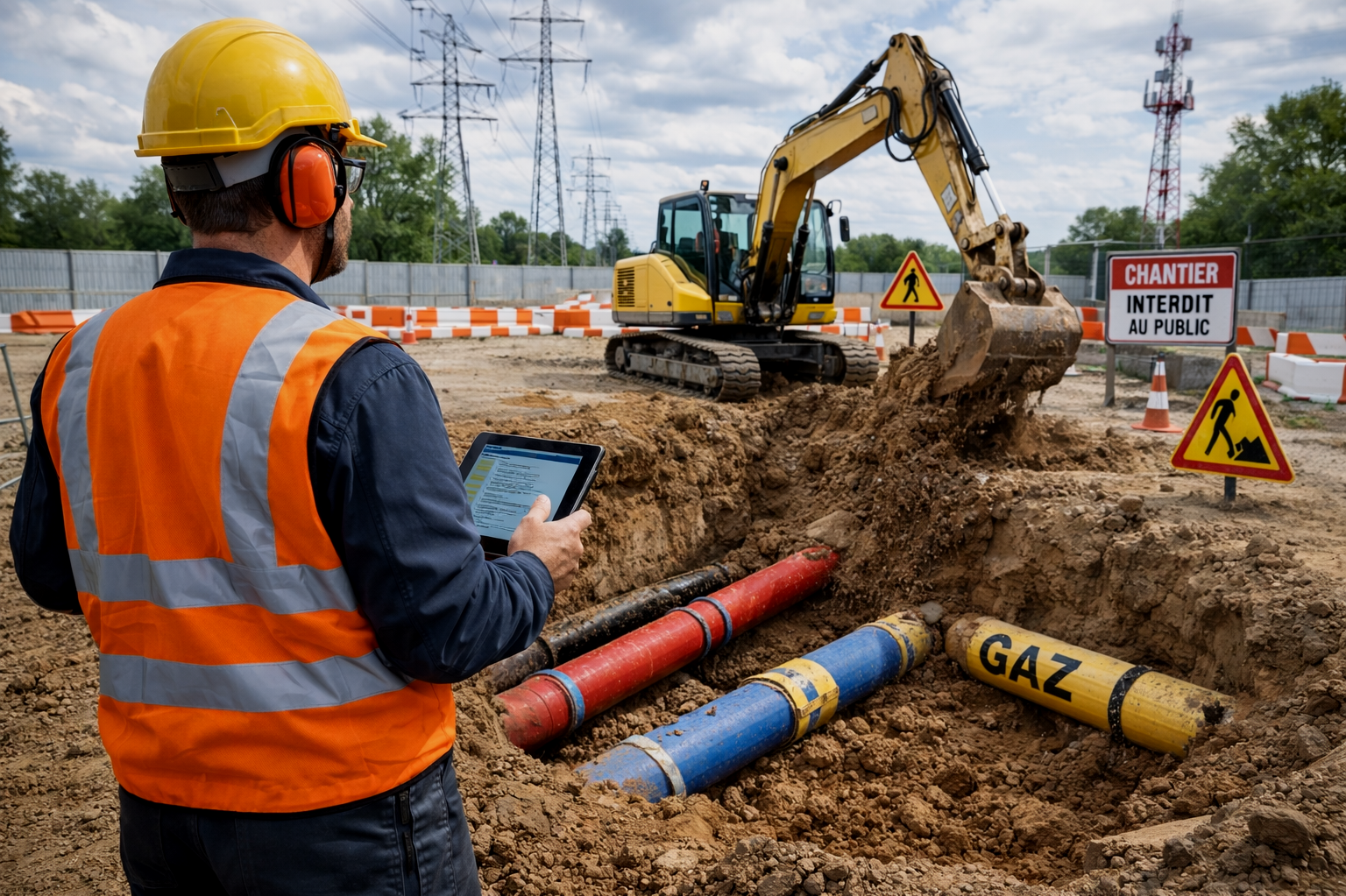 Pour qui ? Les conducteurs d'engins (pelles, nacelles, foreuses), les suiveurs et les ouvriers effectuant des travaux urgents. Le lien avec le CACES : Si vous passez un CACES R482 (Engins de chantier), vous êtes quasi systématiquement concerné. Objectif : Savoir identifier les grillages avertisseurs et respecter les distances de sécurité.